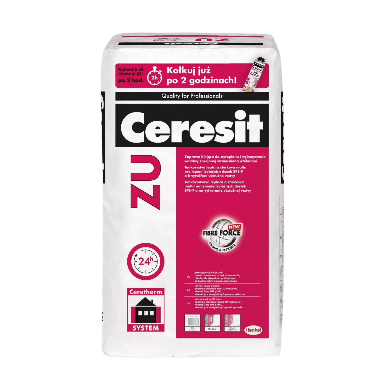 Zaprawa Ceresit ZU służy do ocieplania ścian zewnętrznych budynków z zastosowaniem płyt styropianowych. Jest składnikiem złożonych systemów ocieplania ścian zewnętrznych (ETICS) budynków Ceresit Ceretherm. Zaprawa Ceresit ZU stosowana jest zarówno do mocowania płyt styropianowych EPS i XPS, jak i do wykonywania zbrojonej warstwy ochronnej przy ocieplaniu budynków nowo wznoszonych, jak i poddawanych termorenowacji.